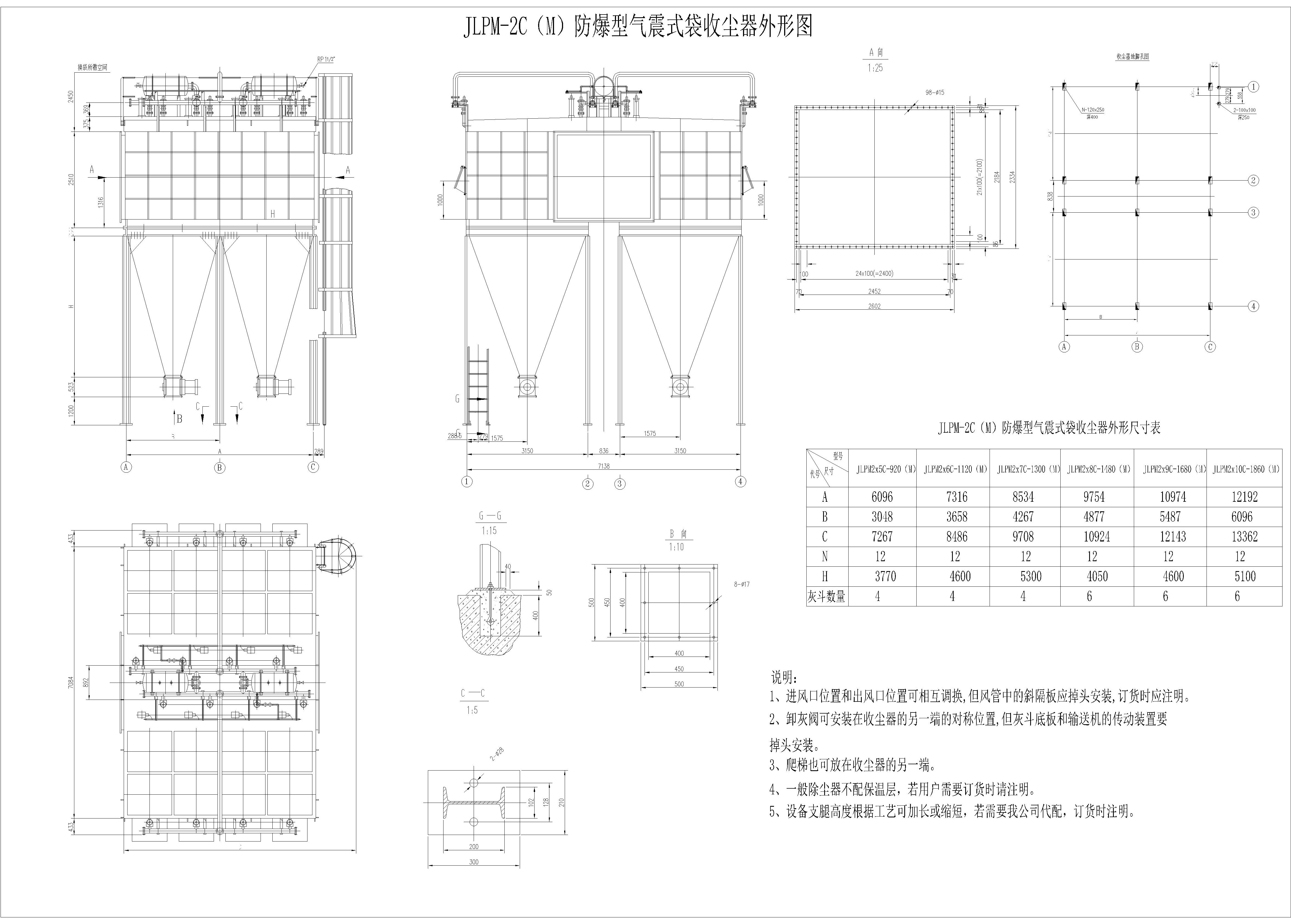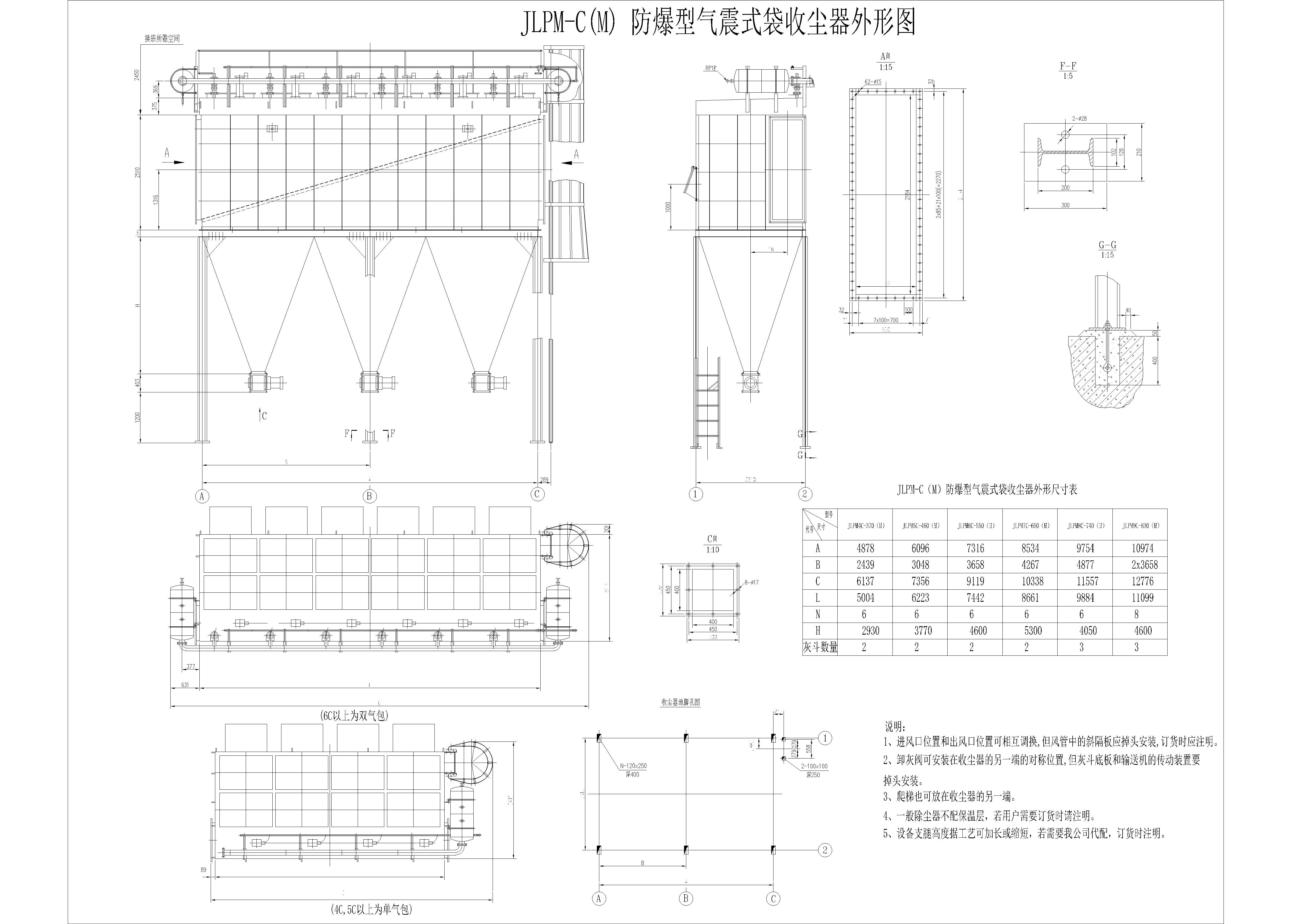 - 清灰柜的電源,卸灰裝置的供配電、至收塵器的各種配線,收塵器的照明均由用戶自理,本公司不負(fù)責(zé)供應(yīng)。